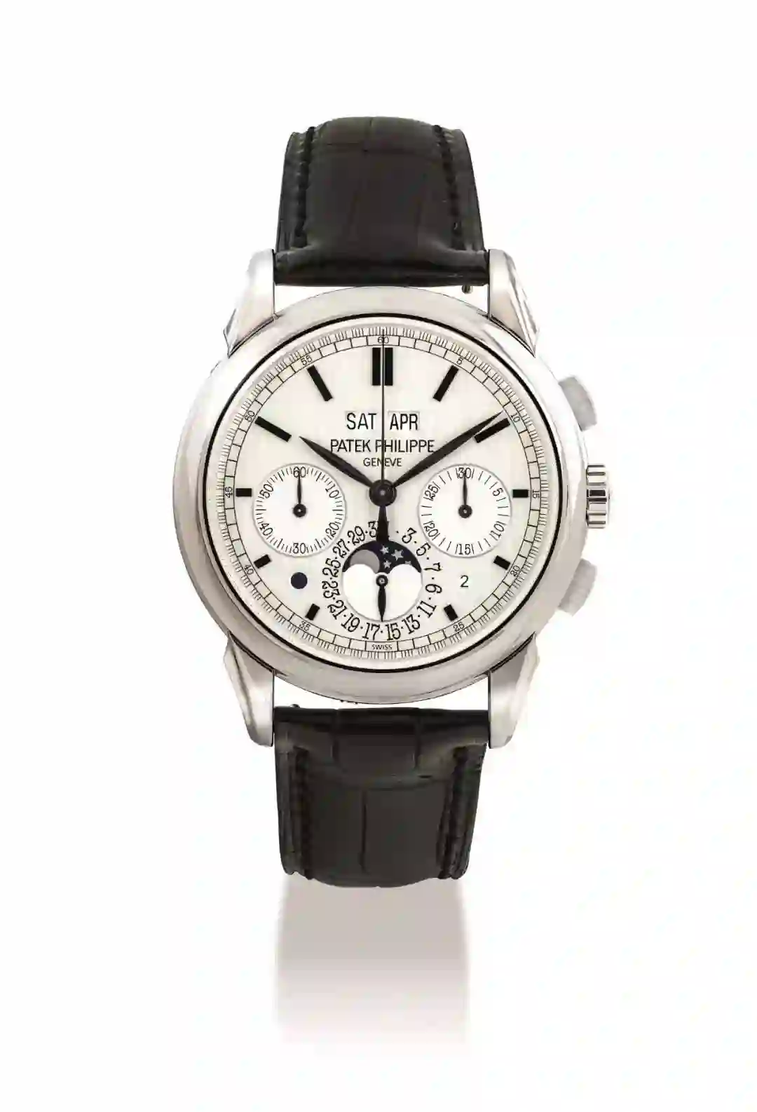 18k白金腕表,配万年历、计时功能、月相、闰年及日夜显示,型号5270