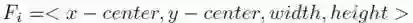 最后,如果使用一个物体与其他被检测物体的遮挡比率,当遮挡另一个物体的最近物体消失时,这两个物体之间会交换值。特征向量Fi由其边界框的特定值定义如下: