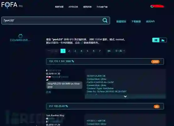 由于DNS协议 运行在 UDP 协议 之上,使用端口号53,所以可以使用一些特殊的搜索引擎来快速获取目标。