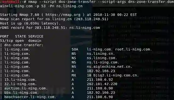 dig @ns.lining.cn axfr li-ning.com