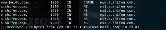 看到上面的情况,问题就来了,按照一般的逻辑,当dns请求到别名的时候,查询会终止,而是重新发起查询别名的请求,所以此处应该返回的只是www.a.shifen.com。但是为什么返回a.shifen.com的这个域的NS呢?