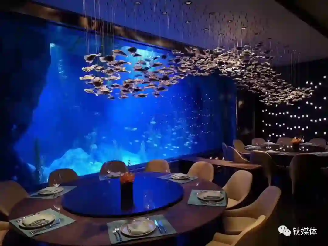水下复式套房应该算是诸多房型中的一大亮点,不过住在B9层的钛媒体没能一睹它的真容。从官方给出图片和介绍来看,水下复式套房包括首层的接近深坑水面的户外露台和起居室,以及位于水面以下的卧室部分,在卧室,你可以体验水下鱼儿在你床边悠游的奇妙体验。