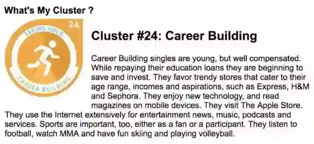 实际上,你只需要在 Acxiom 的「我属于哪个聚类?」工具中回答几个简单问题,你就能知道你个人属于哪个聚类,体验地址: