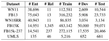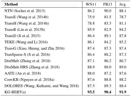 表2 不同嵌入方法的三元组分类精度(以百分比为单位)。基线结果是从相应的论文中获得。