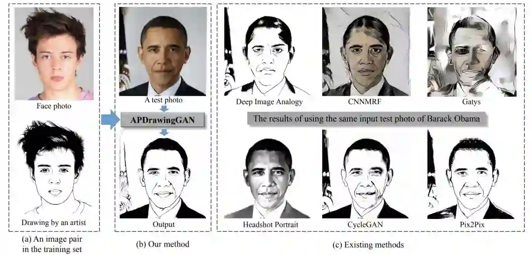 然而,即使是受过专业训练的艺术家,完成一幅精致的肖像画也需要很长时间。因此,自动地将人脸照片转换为高质量的艺术肖像画具有重要的艺术价值和实用价值。
