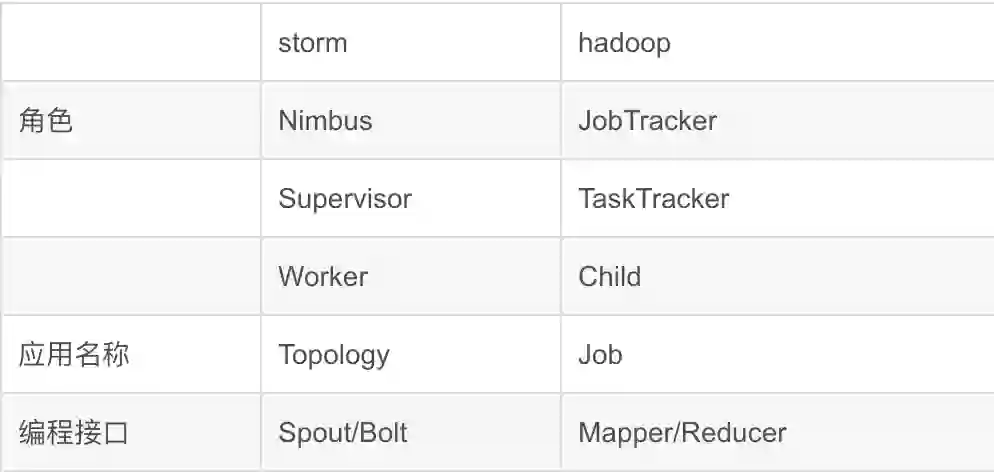 Q:storm与Hadoop区别?