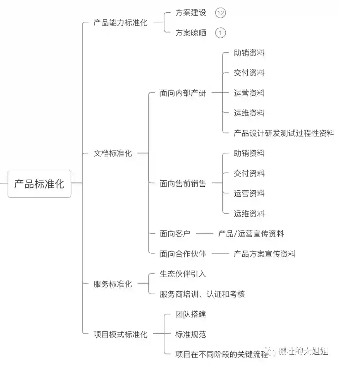 文档标准化:面向内部团队、面向客户和合作伙伴的标准化文档的梳理,比如助销、交付、运营、运维资料等,都会成为后续其他项目学习的弹药库;