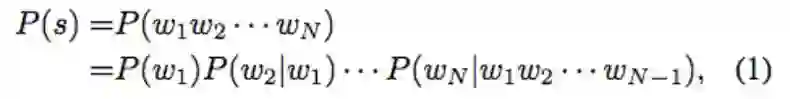 其中 w_i 代表序列 s 中的第 i 个单词。一个单词序列的概率可以被分解为在给定下一个单词的前项(通常被称为上下文历史或上下文)的条件下,与下一个单词的条件概率的乘积。