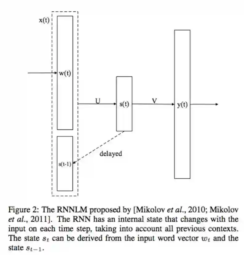 图 2:Mikolov 等人于 2010 年和 2011 年提出的 RNNLM。
