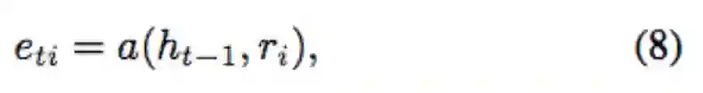 这是一个对齐模型,用于评估某个 token 的表征 r_i 和隐藏状态 h_(t-1) 的匹配程度。该注意力向量是用于预测的上下文历史的一种很好的表征。