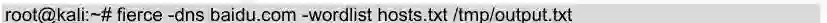 fierce工具和DNSenum工具性质差不多,其fierce主要是对子域名进行扫描和收集信息的。使用fierce工具获取一个目标主机上所有IP地址和主机信息。执行命令如下所示: