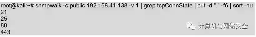 使用Snmpwalk工具也可以枚举目标主机上打开的TCP端口。执行命令如下所示: