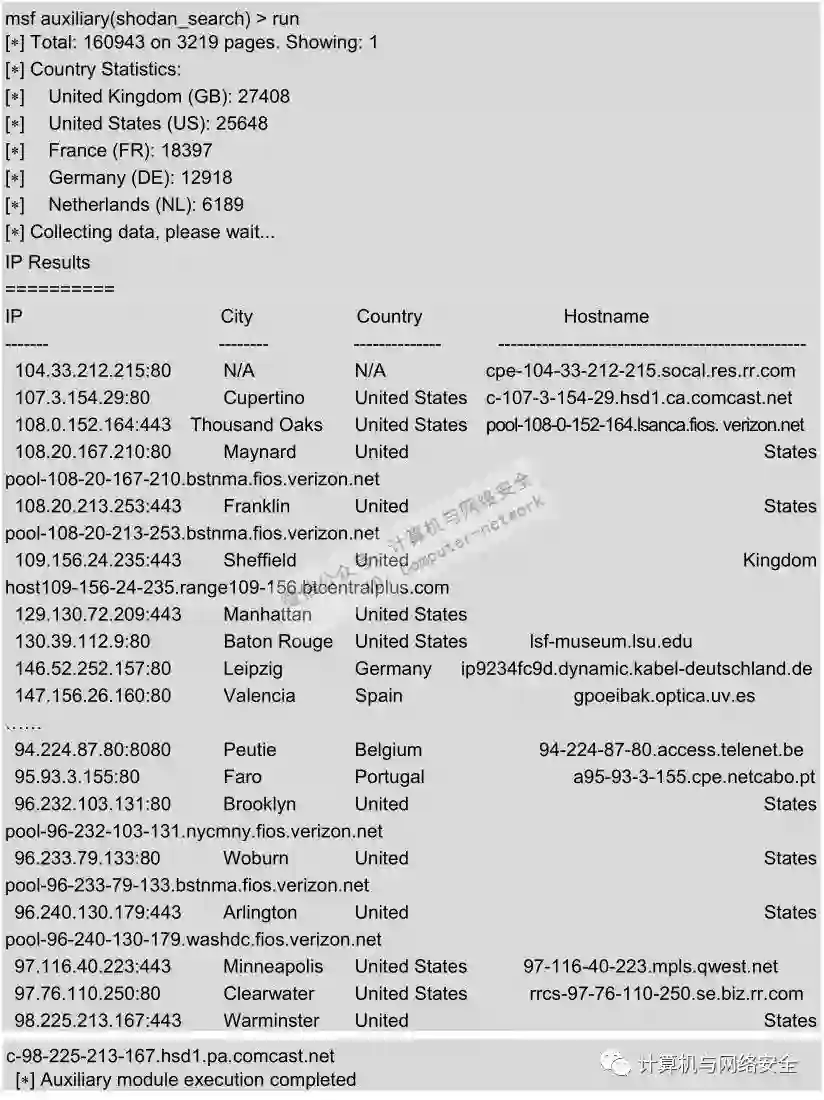 使用Metasploit实现Shodan搜索。具体操作步骤如下所示。