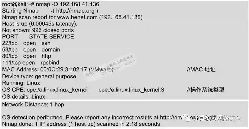Nmap是一个免费开放的网络扫描和嗅探工具包,也叫网络映射器(Network Mapper)。该工具其基本功能有三个,一是探测一组主机是否在线;其次是扫描主机端口,嗅探所提供的网络服务;三是可以推断主机所用的操作系统。通常,用户利用Nmap来进行网络系统安全的评估,而黑客则用于扫描网络。例如,通过向远程主机发送探测数据包,获取主机的响应,并根据主机的端口开放情况得到网络的安全状态。从中寻找存在漏洞的目标主机,从而实施下一步的攻击。