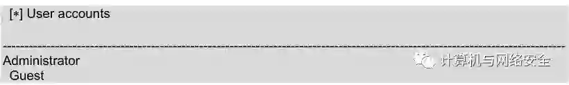 输出的信息显示了该系统中的有两个用户,分别是Administrator和Guest。