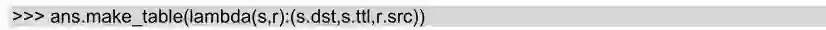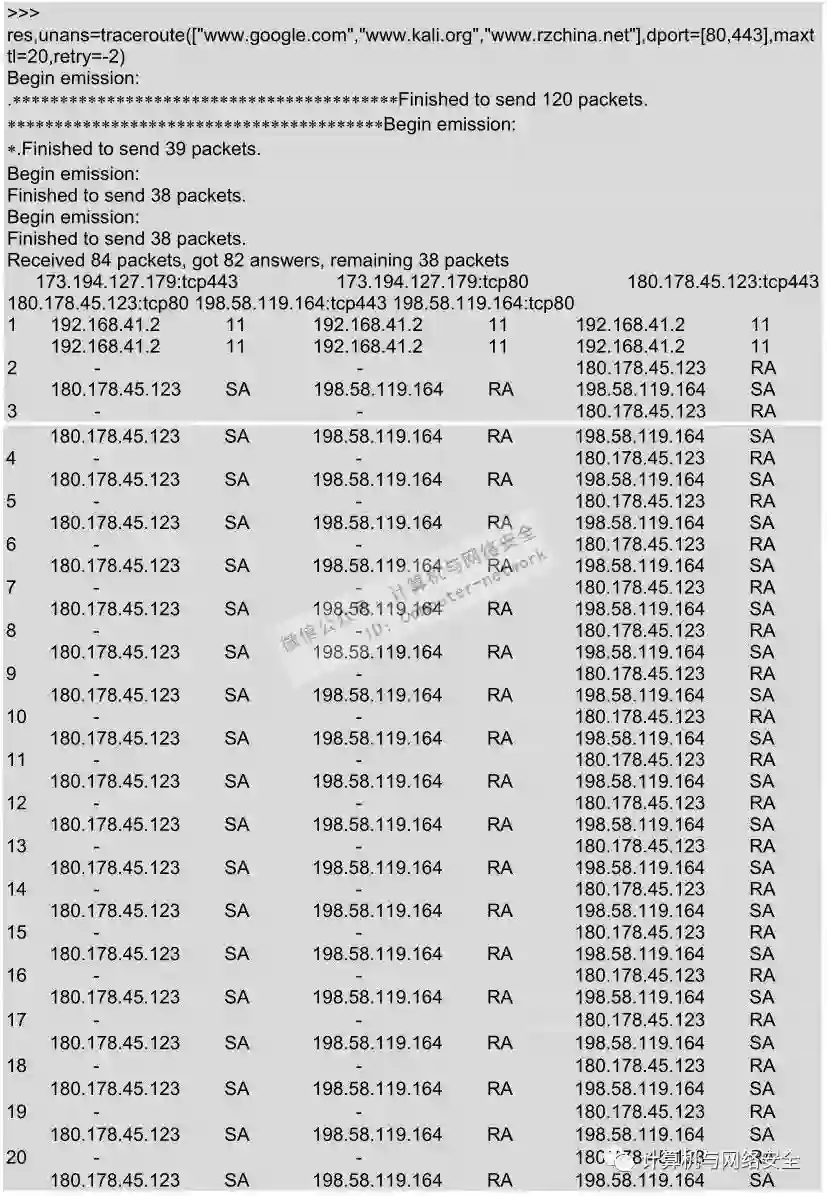 (4)使用scapy查看TCP路由跟踪信息。执行命令如下所示: