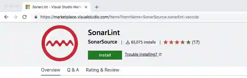 例如,下面是在 VS Code 扩展市场上的一个 SonarLint 的 VS Code 扩展: