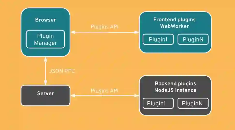 Theia 插件使用一种协议,意味着你在其他地方也可以运行该插件。一些使用浏览器的 worker 线程运行(可以称为前端插件),或者可以在服务器端以独立进程方式运行(后端插件)。你可以很容易的处理各种类型的命名空间,包括 VS Code 扩展。