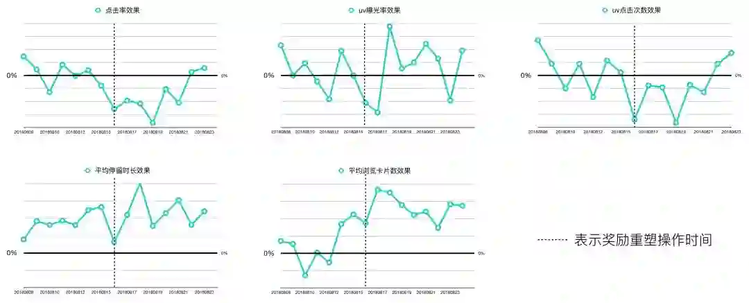 由于用户体验是时间连续的,UV维度的效果在报表上有一定的滞后性,约一周后点击率和万订单恢复到正向水平,同时用户停留时长和浏览深度有进一步提升,说明Agent确实学到了在避免伤害用户的前提下,从多轮交互中获取更多转化的策略,如上图后半段所示。