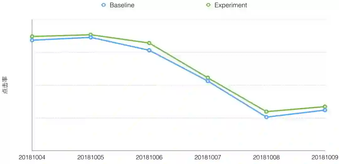 在DDPG的改造工作中,我们使用Advantage函数获得更稳定的训练过程和策略梯度。State权值共享和On-Policy方法使我们的模型参数减少75%。Advantage函数和State权值共享结合,允许我们使用基线策略样本做数据增强,使每天的训练样本从十万量级扩展到百万量级,同时充分的预训练保证策略上线后能迅速收敛。经过这些努力,强化学习线上实验取得了稳定的正向效果,在下单率效果持平的情况下,周效果点击率相对提升0.5%,平均停留时长相对提升0.3%,浏览深度相对提升0.3%。修改过的模型与A2C的主要区别是我们仍然使用确定性策略梯度,这样我们可以少估计一个动作的分布,即随机策略方差降至0的特例。上图表明强化实习的效果是稳定的,由于“猜你喜欢”的排序模型已经是业界领先的流式DNN模型,我们认为这个提升是较为显著的。