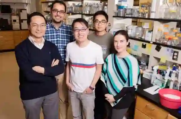 ▲赵惠民教授课题组。从左到右:赵惠民教授,Mohammad Hamedi Rad,Zehua Bao,Pa Xue,以及Ipek Tasan(图片来源:L. Brian Stauffer)