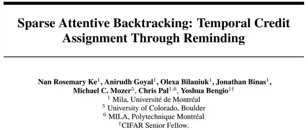 请注意,人类使用的是过去信用分配经验中一个非常稀疏的子集,它可以直接随机利用过去的经验及其与当前状态的相关性,我们提出了稀疏注意力回溯(SAB)机制:它是针对神经网络模型(如 RNN)中信用分配问题相关过去状态的学习、动态、稀疏的访问方式及回放原理。