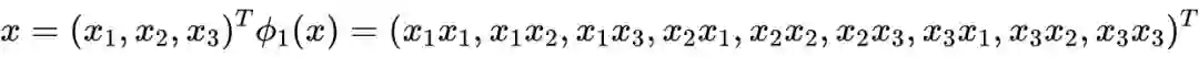 假如我们需要对样本进行特征组合,得到更高维的样本,比如进行如下特征映射: