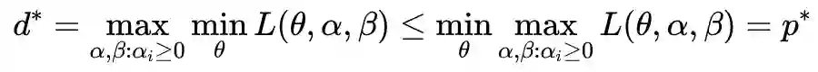 ,在推导对偶问题表达式的过程,注意到: