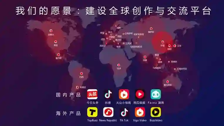 基于我们前面提到的种种尝试与努力,字节跳动的愿景也正在逐步实现——建设全球创作与交流平台。公司成立至今六年以来,我们的产品和服务已经覆盖 150 多个国家、75 个语种,在 40 多个国家和地区位居应用商店总榜前列。而这背后,正是科技和创新在推动我们全球化的发展。技术出海,是字节跳动全球化发展的核心战略,人工智能技术是字节跳动全球化取得当前进展的关键。作为人工智能时代的中国创业者,未来字节跳动将继续孜孜以求,帮助全世界的用户更好地创作、交流、互动,也为中国人工智能的发展贡献一份力量!