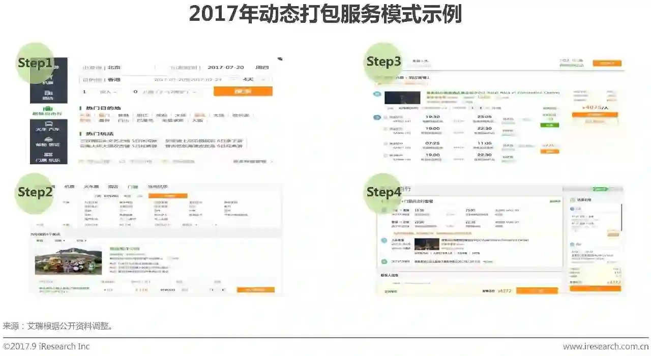当前信息丰富度提高,自助游用户出行及预订行为越来越呈现碎片化和多样化,之前OTA的半自助打包及精选套餐已经不能够完全满足自助游用户需求。近年OTA相继推出动态打包技术,推动多元素产品动态整合服务。