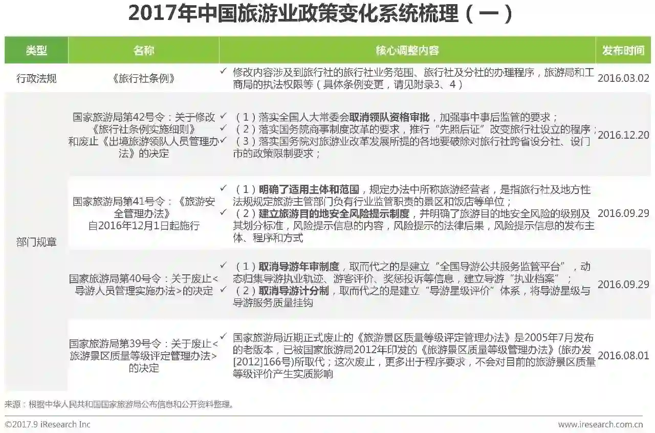 2017年中国旅游业政策变化系统梳理