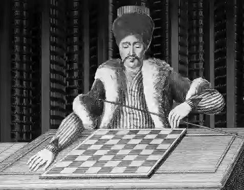 1770年,在奥地利皇后玛丽亚·特蕾莎的宫殿里,一位名叫沃尔夫冈·冯·肯佩伦的发明家发明了一台国际象棋机,并给它取名为“土耳其人”。这个机器人的大小跟真人差不多,用枫木雕刻而成,穿着土耳其长袍,坐在一个木柜子后面,柜子之上放着棋盘。