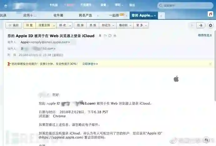 苹果id注册邮箱收到的被侵入的登录记录