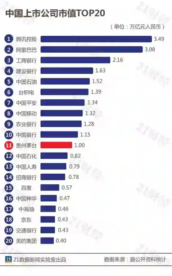 跻身A股上市公司市值排行榜第11位