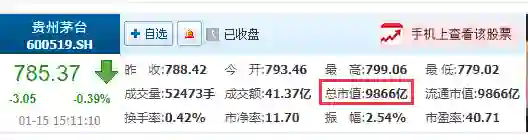 茅台在昨天(1月15日)盘中市值突值终于1万亿大关,成为A股第一个市值突破万亿的消费股。