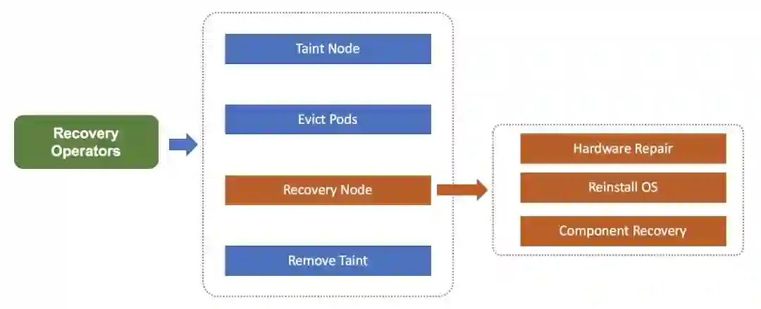 除此之外,超大规模集群中,节点数量已经达到 10K 量级,节点硬件故障、组件异常等问题会常态出现。