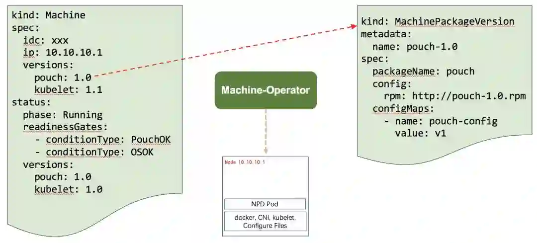 在 Machine、MachinePackageVersion CRD 基础上,设计实现了节点终态控制器 Machine-Operator。