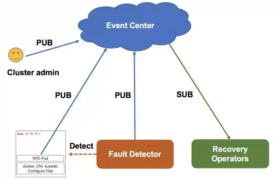 故障信息统一存储于事件中心,关注集群故障的组件或系统都可以订阅事件中心事件拿到这些故障信息。