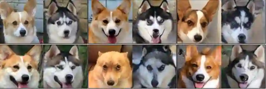 论文中不同种类的狗的转换结果,左边一列是输入