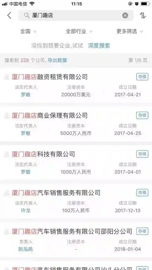 稍微说明一下,因为大白汽车是提供直租业务,所以为了获取当地的汽车牌照就必须在各地设立分公司。罗敏自己也直言不讳地说,这是一个很重的模式。来看看,这密密麻麻的公司注册情况。