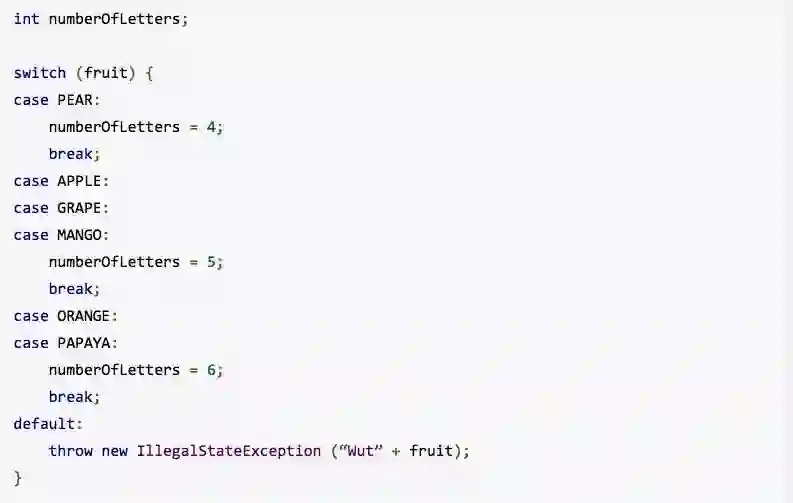 在Java 11中,switch语句追随C和C++,默认情况下使用fall-through语义。 虽然传统的控制流程在编写低级代码时很有用,但随着switch在更高级别的环境中采用,易出错会盖过其灵活性。