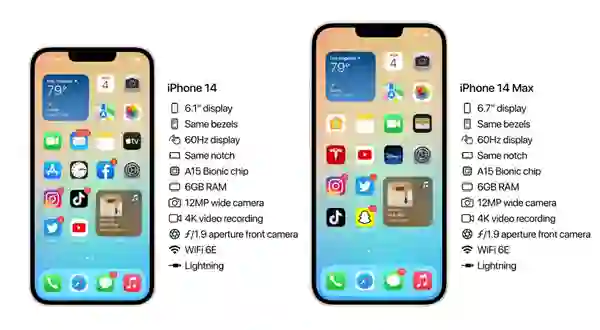 根据报道,iPhone 14 Pro 将配备 6.12 英寸的显示屏,iPhone 14 Pro Max 将配备 6.69 英寸显示屏。此外,iPhone 14 Pro 和 iPhone 14 Pro Max 将会在今年首次取消刘海屏,将用一个打孔和一个用于前置摄像头和面容 ID 传感器的药丸形切口来取代刘海。