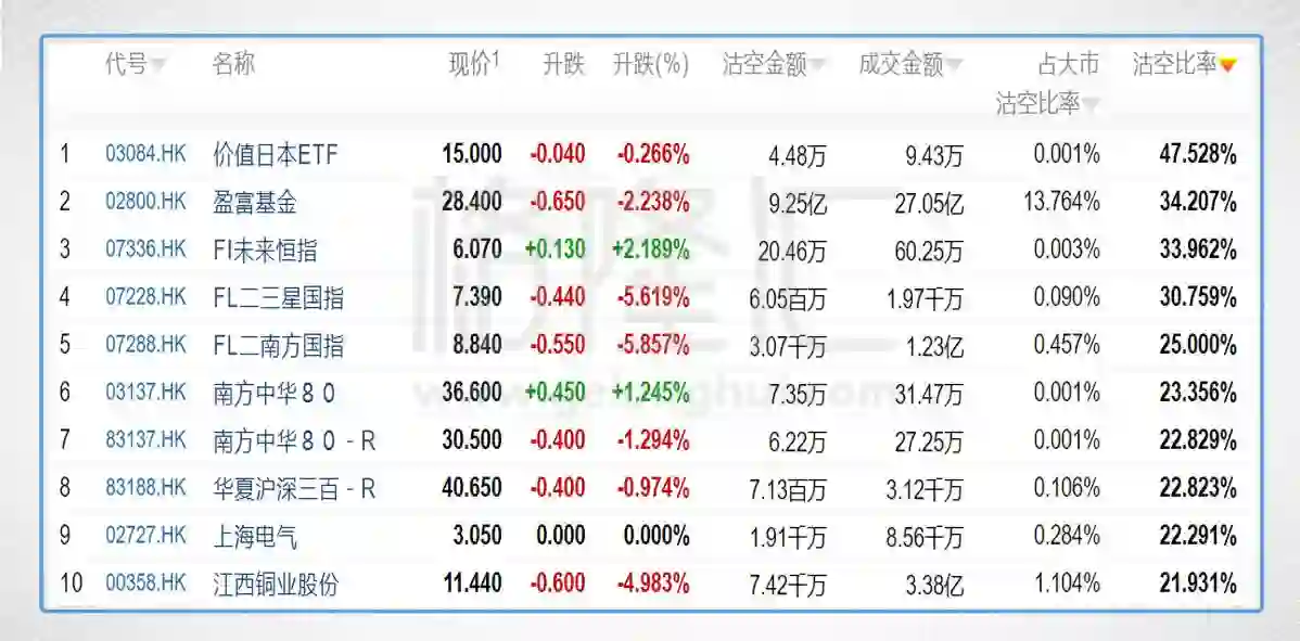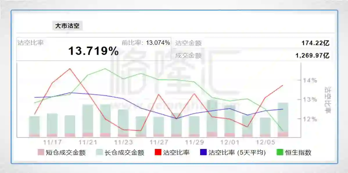 港股今日沽空金额174.22亿港元,大市沽空比率13.719%,较上一个交易日(13.074%)升0.645%。