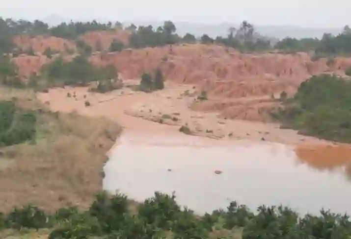 赣南地区是重要的离子吸附型稀土矿区之一,储量占全国离子型稀土矿的40%左右。该地区从20世纪70年代开始采用池浸开采工艺,开采稀土时剥离表层土被,对矿体开挖,开采后的矿山基本被夷为平地,而浸泡之后的弃渣则形成规模庞大的尾矿堆,这种开采方式被形象地称为“搬山运动”。 池浸工艺每开采1吨稀土,要破坏200平方米的地表植被,剥离300平方米表土,造成2000立方米尾砂,每年造成1200万立方米的水土流失。由于原有植被被破坏,尾矿堆中含有酸性较强的化学物质,植物很难生长,矿区地表基本荒漠化,即使采矿扰动已经停止,生态环境仍长年无法恢复;加上赣南稀土矿山大部分缺少防治措施,每到雨季便泥流成河,造成极其严重的水土流失。