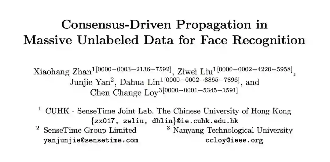 这篇 ECCV 2018 的论文是做人脸识别的,主要提出了一个 Consensus-driven propagation 的算法,该算法主要由三部分:Committee,Mediator 和 Pseudo Label Propagation 组成。