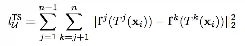 的第 j 次预测, T 表示某种数据变换。除了对样本做变换,在网络内也使用类似 Dropout 或随机池化等技术产生随机性。