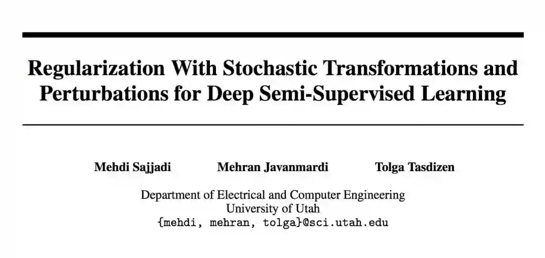 而且这种不确定性的存在,使得模型对同一个样本的多次预测结果可能不同。因此论文提出一个无监督代价(即我说的半监督正则),其通过最小化对同一个样本的多次预测,利用这种随机性来达到更好的泛化性能。该无监督代价形式如下: