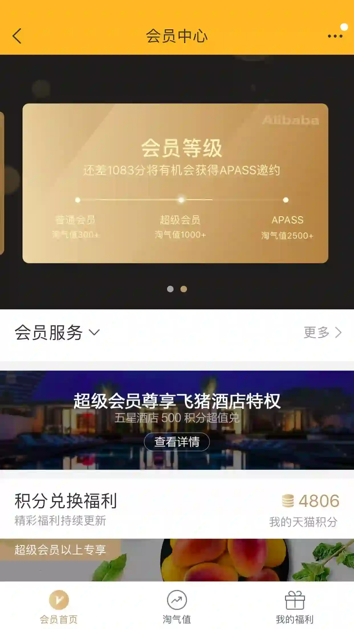 “淘气值”共有300、1000、2500三档,分别对应普通会员、超级会员和APASS。1000分以上可以成为超级会员,2500分以上有机会被邀约成APASS会员。