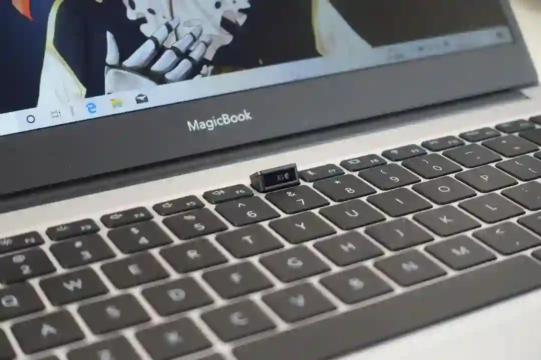 荣耀笔记本 14 将摄像头隐藏在键盘区域,通过按压的方式打开摄像头。这样的设计既美观,又可以保证用户的隐私,可谓一举两得。