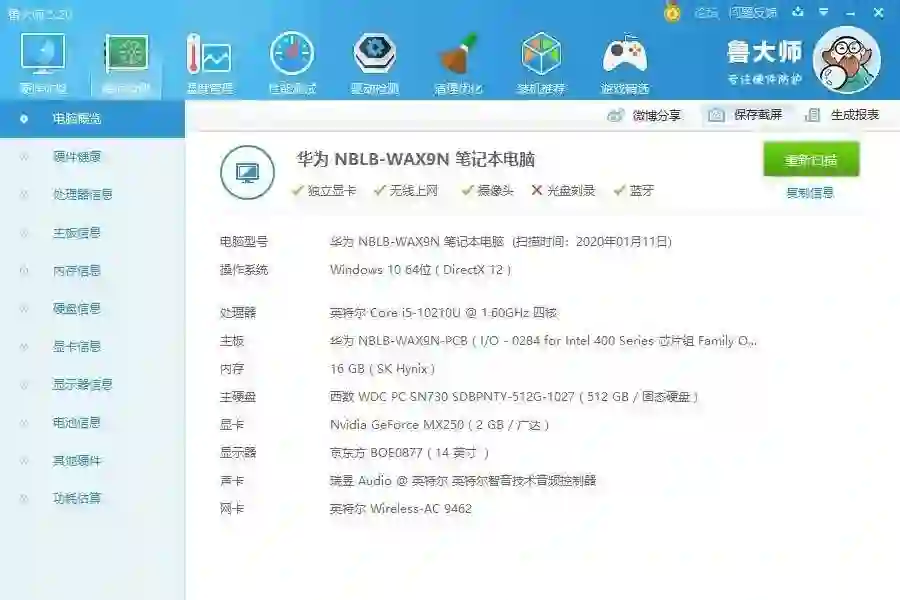 CPU 升级的荣耀笔记本 14 性能表现如何,应该是很多用户关心的问题。我这台荣耀笔记本 14 的配置为 i5-10210U CPU,16GB 内存,GeForce MX250 独立显卡,512GB 固态硬盘,下面就来分析一下它的性能表现。